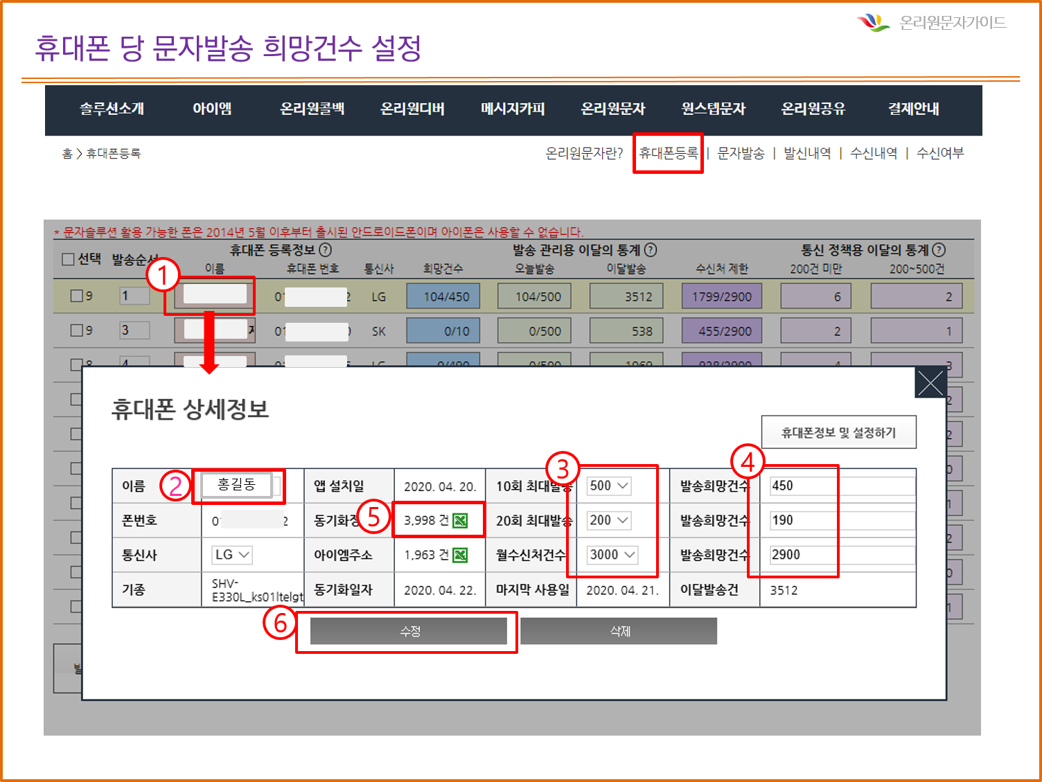 문자 [온리원문자] 발송건수 및 수신처수 직접 설정 2020-04-22 46836